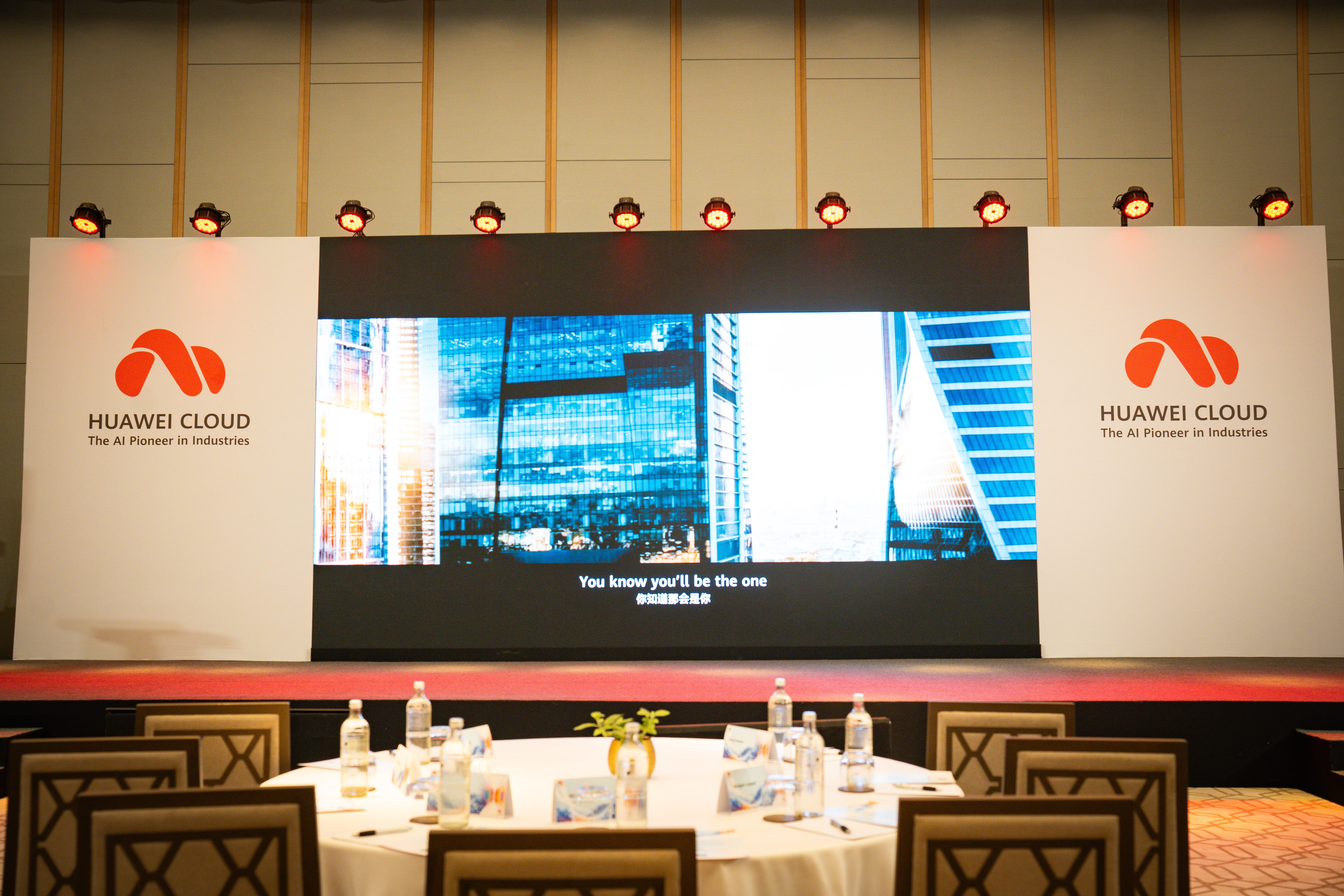 Stage and lighting setup - Panel Counters, Par cans, Fresnel lights & moving heads.